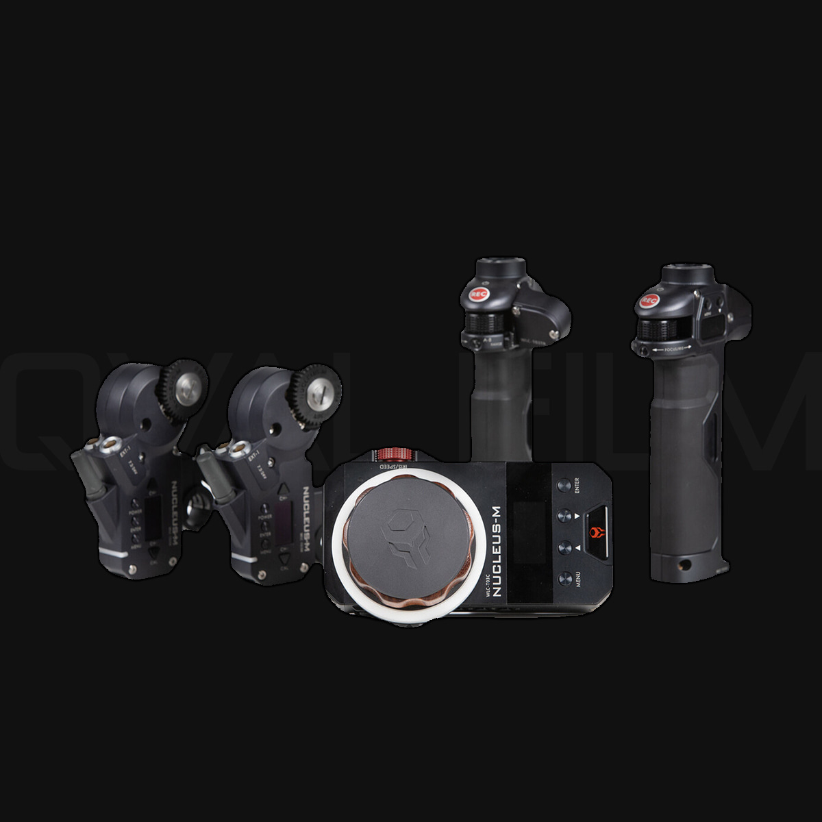 The Tilta Nucleus-M Wireless Lens Control` System features a 1000’ transmission range, and comes with two lens drive motors with built-in wireless receivers, a FIZ hand controller, and two handgrips—one to control focus, and the other iris and zoom. The lens drive motors each feature a cine standard 0.8 MOD drive gear and two 7-pin connectors, which enables you to freely swap or interchange each motor. The motors power by daisy-chaining using the 7-pin cables, and each motor includes a 19mm rod clamp with 19 to 15mm reducing bushing.